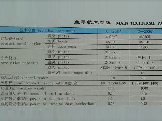 陶瓷機械設(shè)備主要參數(shù)一覽表